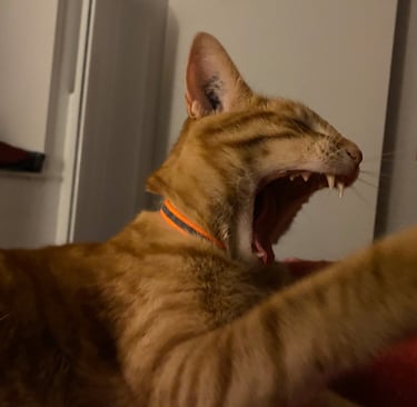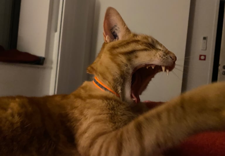 Un (gros) bâillement de Tigrou le Roux (qui est, sans conteste, bien mieux à la librairie que dehors) pour vous souhaiter une très belle année 2026.