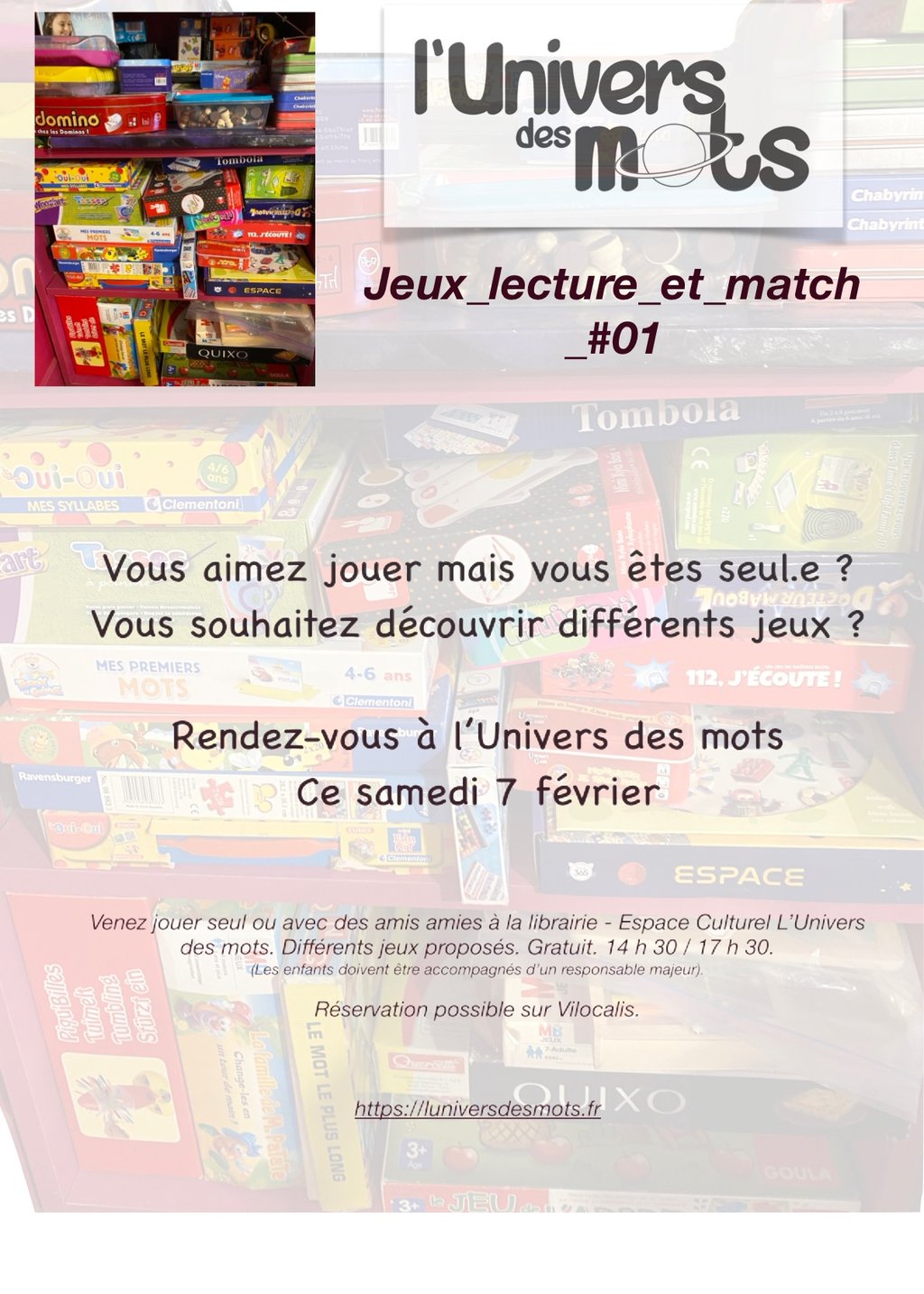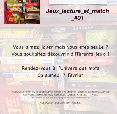 C’est tout nouveau, tout beau : je vous propose de venir jouer à la librairie. J’ai plein de jeux différents, on peut jouer entre ami.e.s, en famille ou tout seul.